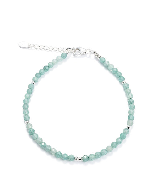 - Dieses zarte Armband ist aus facettierten Amazonit-Perlen gefertigt, die einen Durchmesser von ca. 2,5 mm haben. Der wunderschöne Schliff der Perlen verleiht dem Armband einen strahlenden Glanz und lässt die sanften Grüntöne des Amazonits lebendig erstrahlen.