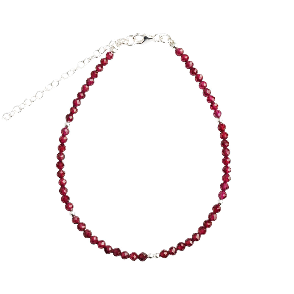 - Hergestellt aus hochwertigem Sterlingsilber und geschliffenen Granatperlen.