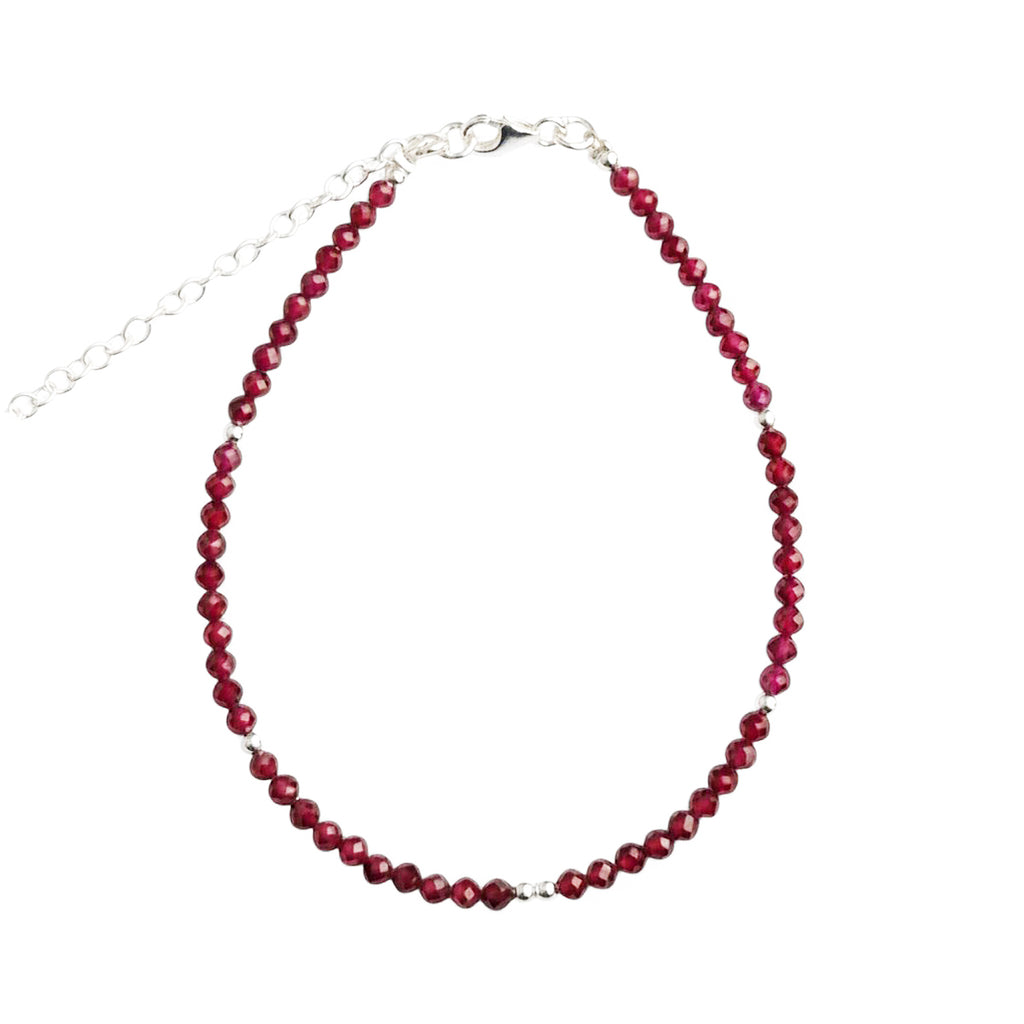 - Dieses tiefrote Armband besteht aus kleinen, facettierten Granatperlen, die einen Durchmesser von ca. 3 mm haben und einen wunderschönen Schliff aufweisen.