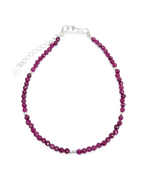 • Dieses rubinrote Armband besteht aus kleinen, facettierten Rubinperlen, die einen Durchmesser von ca. 3 mm haben und einen wunderschönen Schliff aufweisen.
