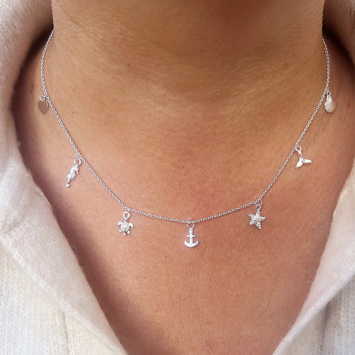 Dieses traumhafte Collier bringt die Schönheit des Meeres direkt zu dir und ist mit liebevollen Küstenmotiven gestaltet.