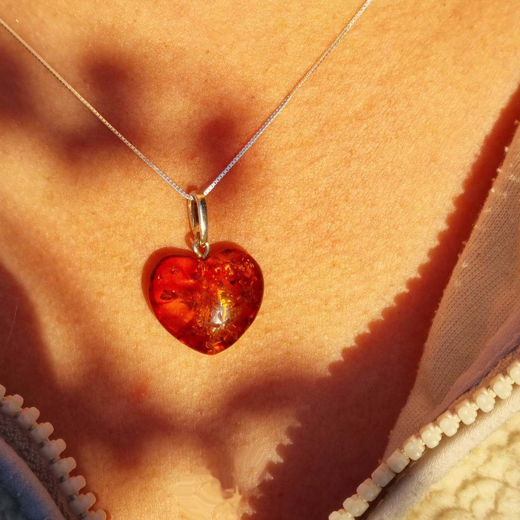 Bernstein Herzchen Set mit passenden Ohrsteckern