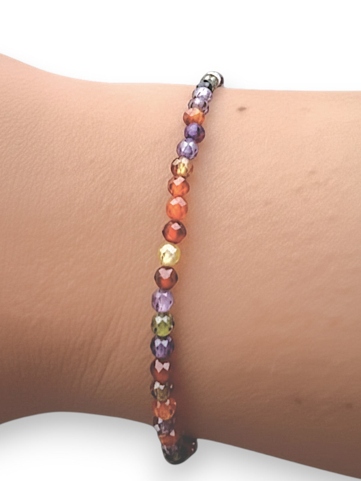 Dieses schlichte, aber elegante Armband aus bunten Zirkoniaperlen bringt Farbe und Freude in Ihren Alltag.