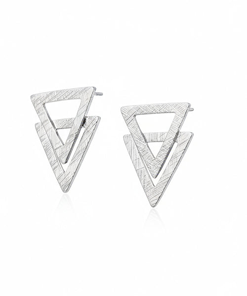 Double triangle ear studs These simple, ear studs are very trendy! The triangles are clearly brushed so that there is a three-dimensional surface. Material: 925 sterling silver Size approx.: 10 x 20 mm