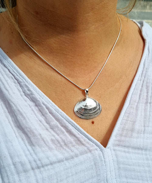 Very nice beach shell pendant (worked true to nature, the template was collected on the Baltic Sea beach itself) Size: approx. 31 mm x 22 mm plus eyelet Material: 925 sterling silver