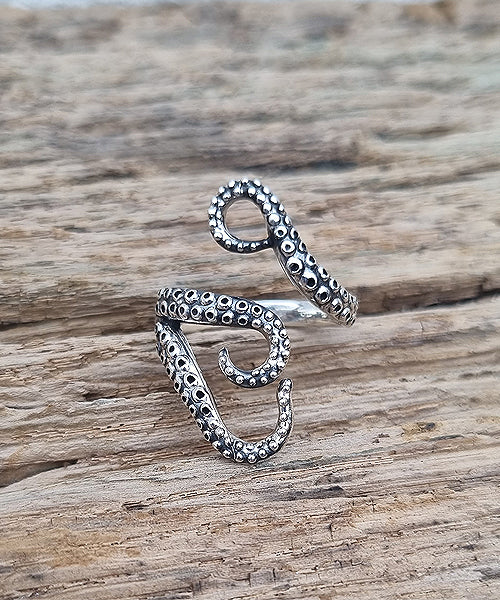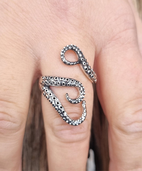 ¡Este anillo de pulpo es el "punto de atracción" en absoluto! Es particularmente hermoso y estable y hemos ennegrecido un poco el anillo para enfatizar los detalles. El anillo está disponible en los tamaños 58 y 60 y, por lo general, se ajusta al dedo medio. También tenemos colgantes a juego en nuestra gama Tamaño: 47 mm de alto, 23 mm de ancho Material: plata de ley 925