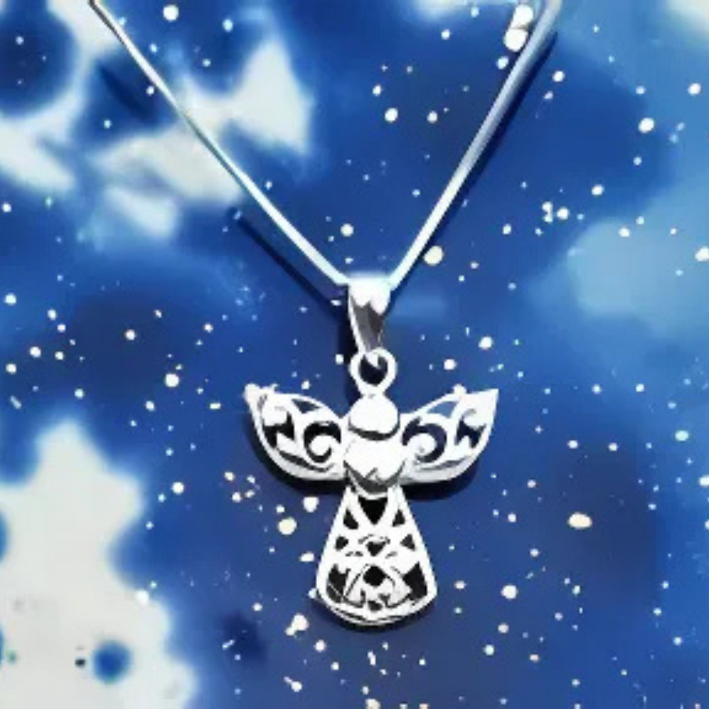 Ángel de la guarda con corazón realizado en plata de ley 925. Dimensiones: 22x17mm Material: plata de ley 925