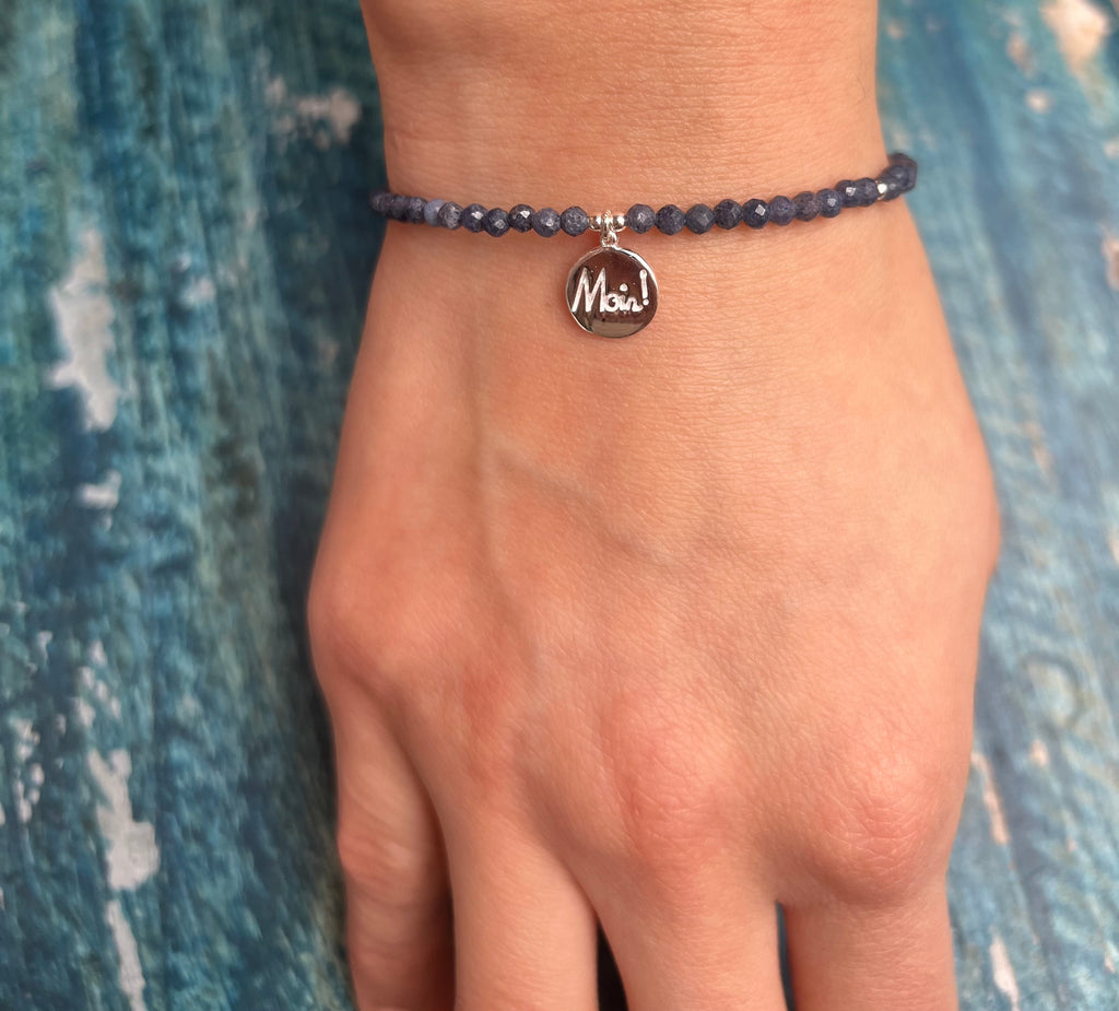 Edelstein Armband mit Moin Anhänger Meeresblauer Topas