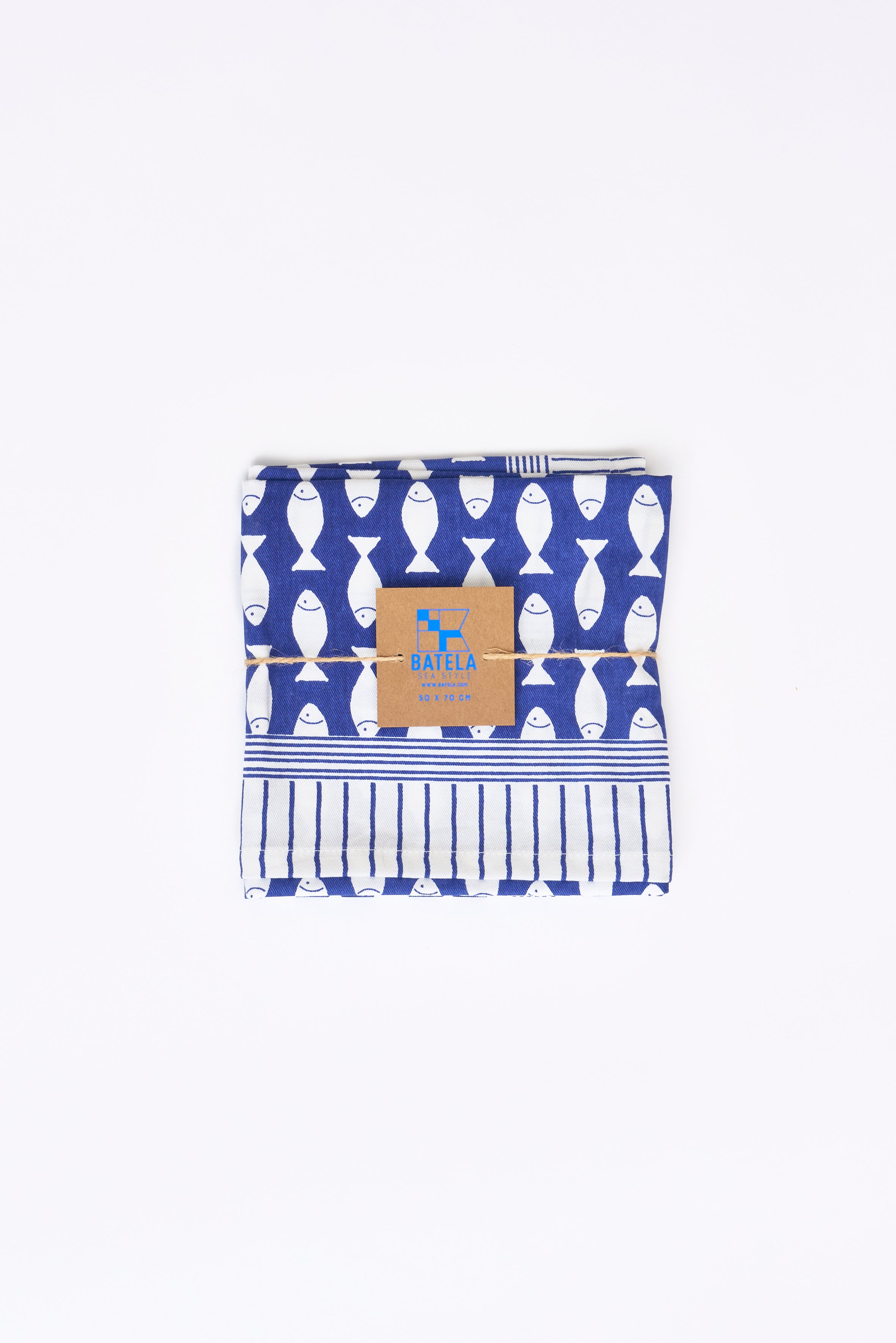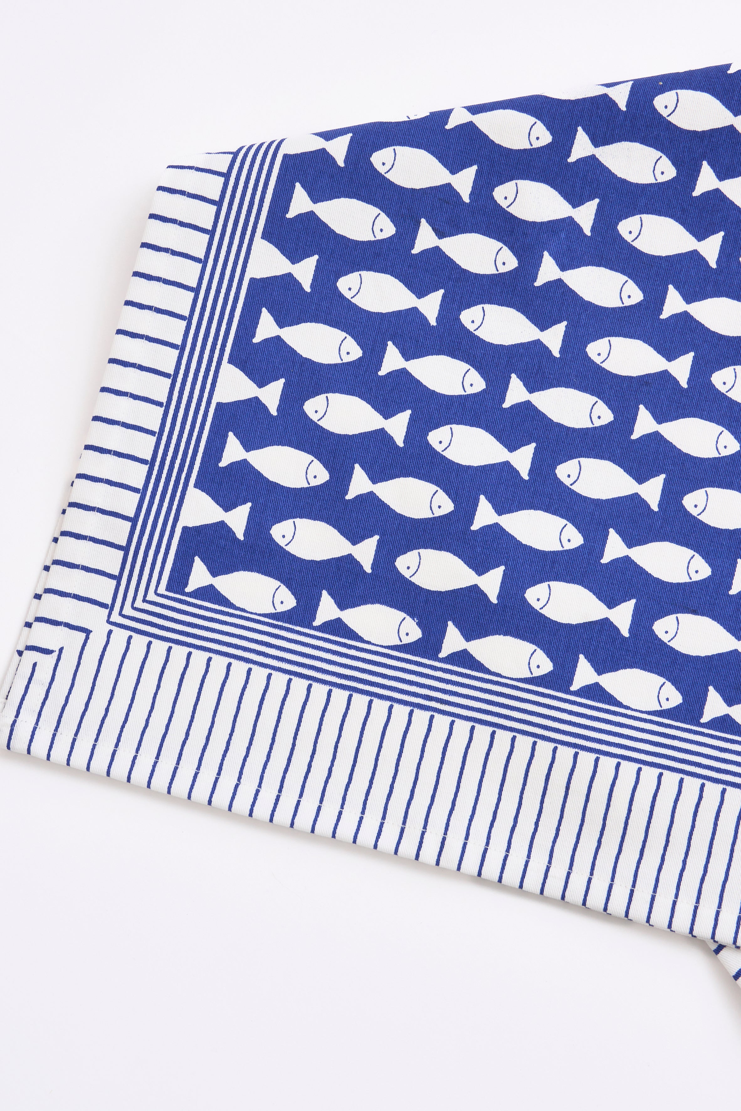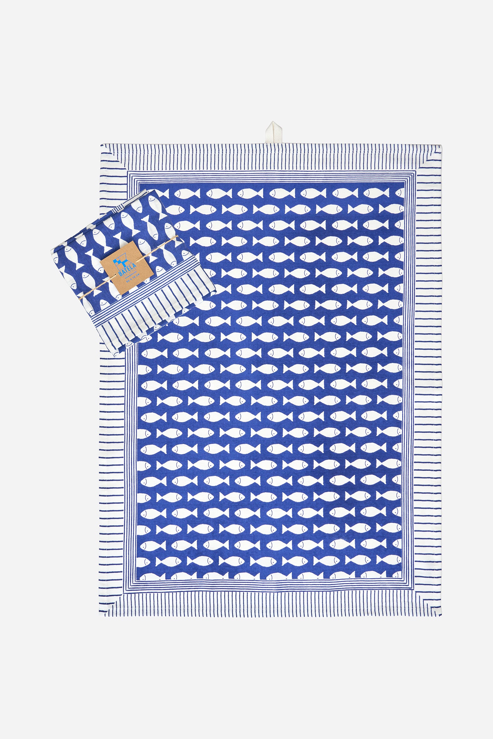- Das Geschirrtuch zeigt künstlerischen Druck von kleinen weißen Fischchen auf blauem Grund der perfekt das maritime Thema einfängt.