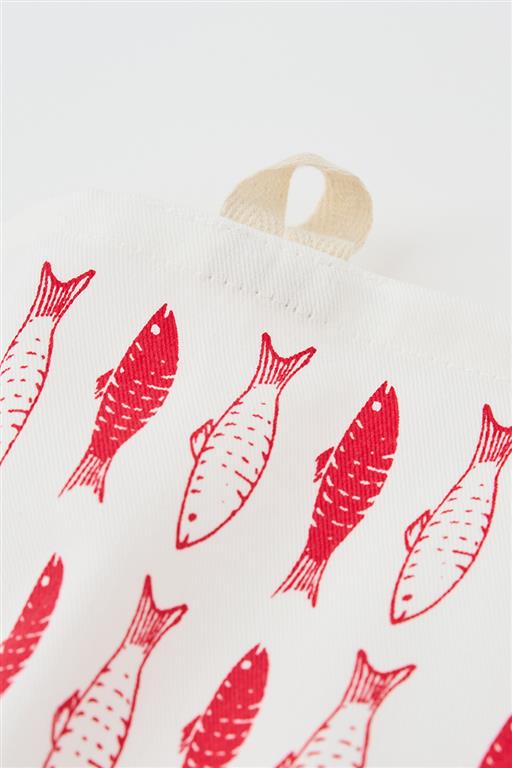 - Das Geschirrtuch zeigt den künstlerischen Druck kleiner roter Fischchen der perfekt das maritime Thema einfängt. Die Farbgestaltung sorgt für einen frischen und klassischen Look, der in jeder Küche gut zur Geltung kommt.