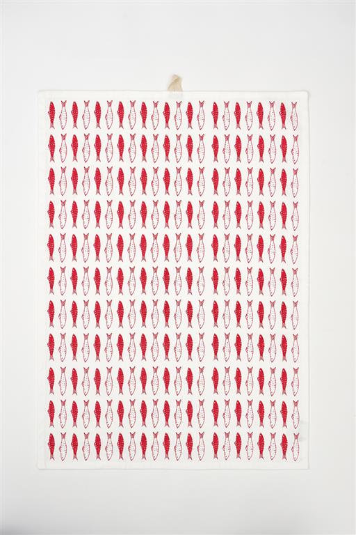 Entdecke dieses wunderschöne Geschirrtuch, das kleine rote Fischchen zeigt.